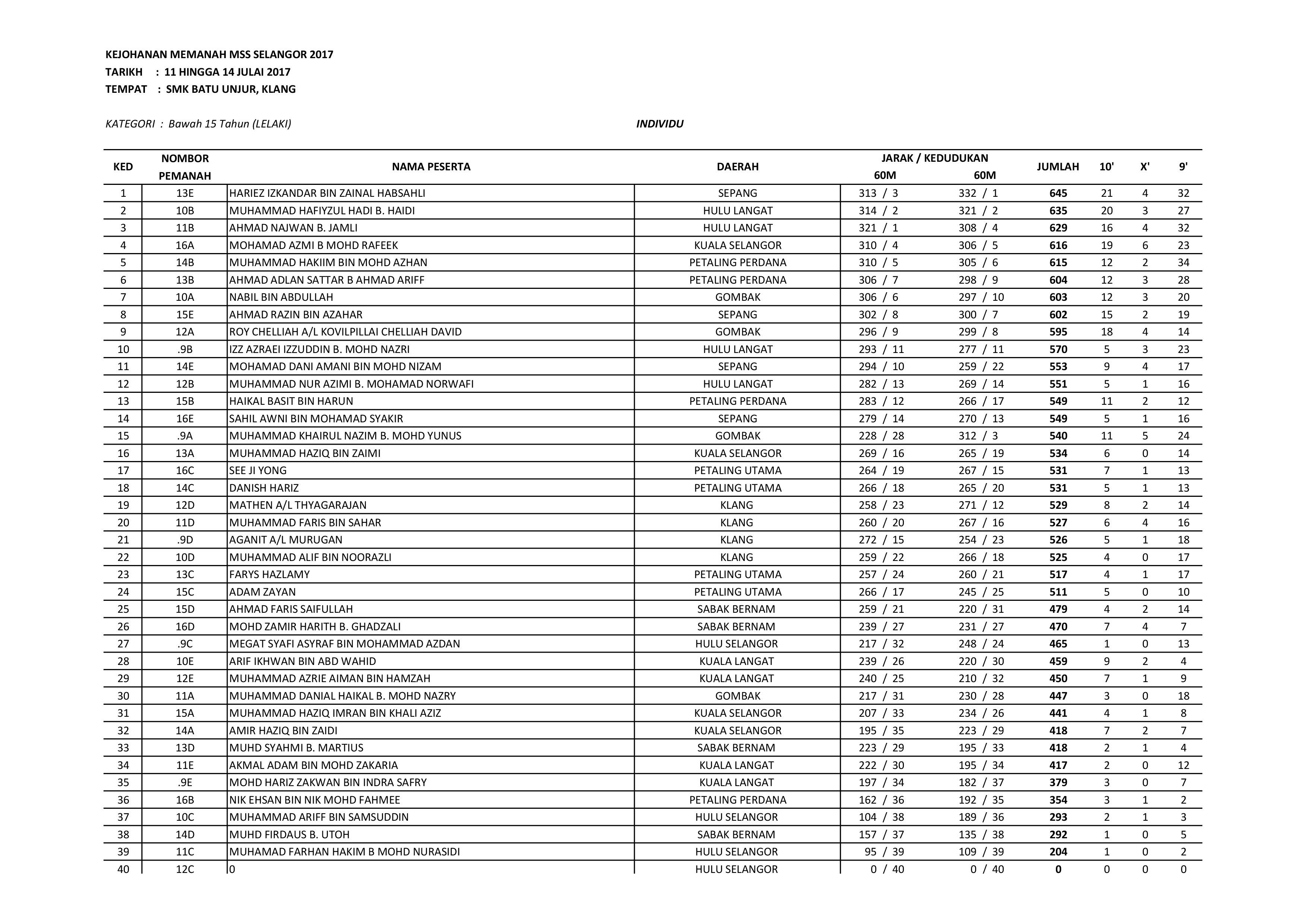<h2 style="text-align: center;">Kejohanan Memanah MSS Selangor 2017</h2> Tarikh: 11 - 14 Julai 2017 Lokasi: Sekolah Menengah Kebangsaan Batu Unjur, Kelang <p style="text-align: center;"><span style="color: #ff0000;"><strong>Keputusan Rasmi Kejohanan Memanah MSSS 2017</strong></span></p> <a href="https://archery.my/wp-content/uploads/2017/07/KEPUTUSAN-RASMI-KEJOHANAN-MEMANAH-MSS-SELANGOR-2017-1-l18.jpg"><img class="aligncenter size-full wp-image-586" src="https://archery.my/wp-content/uploads/2017/07/KEPUTUSAN-RASMI-KEJOHANAN-MEMANAH-MSS-SELANGOR-2017-1-l18.jpg" alt="" width="3508" height="2479" /></a><a href="https://archery.my/wp-content/uploads/2017/07/KEPUTUSAN-RASMI-KEJOHANAN-MEMANAH-MSS-SELANGOR-2017-P18.jpg"><img class="aligncenter size-full wp-image-587" src="https://archery.my/wp-content/uploads/2017/07/KEPUTUSAN-RASMI-KEJOHANAN-MEMANAH-MSS-SELANGOR-2017-P18.jpg" alt="" width="3508" height="2479" /></a> <a href="https://archery.my/2017/07/05/kejohanan-memanah-mss-selangor/keputusan-rasmi-kejohanan-memanah-mss-selangor-2017-2/"><img class="aligncenter wp-image-582 size-full" src="https://archery.my/wp-content/uploads/2017/07/KEPUTUSAN-RASMI-KEJOHANAN-MEMANAH-MSS-SELANGOR-2017-7.jpg" alt="" width="3508" height="2479" /></a><a href="https://archery.my/wp-content/uploads/2017/07/KEPUTUSAN-RASMI-KEJOHANAN-MEMANAH-MSS-SELANGOR-2017-8.jpg"><img class="aligncenter size-full wp-image-585" src="https://archery.my/wp-content/uploads/2017/07/KEPUTUSAN-RASMI-KEJOHANAN-MEMANAH-MSS-SELANGOR-2017-8.jpg" alt="" width="3508" height="2479" /></a><a href="https://archery.my/wp-content/uploads/2017/07/KEPUTUSAN-RASMI-KEJOHANAN-MEMANAH-MSS-SELANGOR-2017-9.jpg"><img class="aligncenter wp-image-584 size-full" src="https://archery.my/wp-content/uploads/2017/07/KEPUTUSAN-RASMI-KEJOHANAN-MEMANAH-MSS-SELANGOR-2017-9.jpg" alt="" width="3508" height="2479" /></a> <a href="https://archery.my/wp-content/uploads/2017/07/KEPUTUSAN-RASMI-KEJOHANAN-MEMANAH-MSS-SELANGOR-2017-10.jpg"><img class="aligncenter size-full wp-image-583" src="https://archery.my/wp-content/uploads/2017/07/KEPUTUSAN-RASMI-KEJOHANAN-MEMANAH-MSS-SELANGOR-2017-10.jpg" alt="" width="3508" height="2479" /></a>