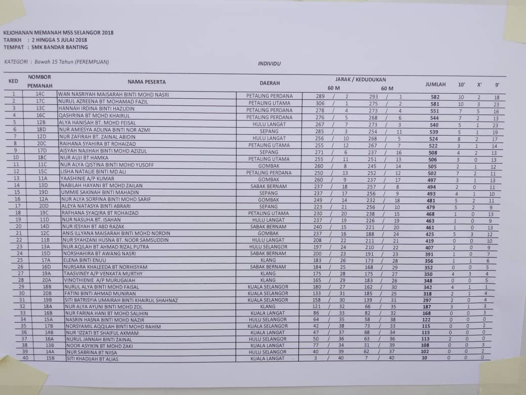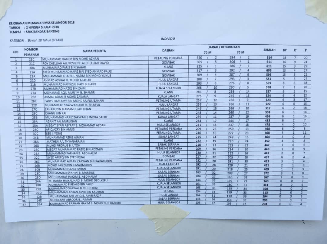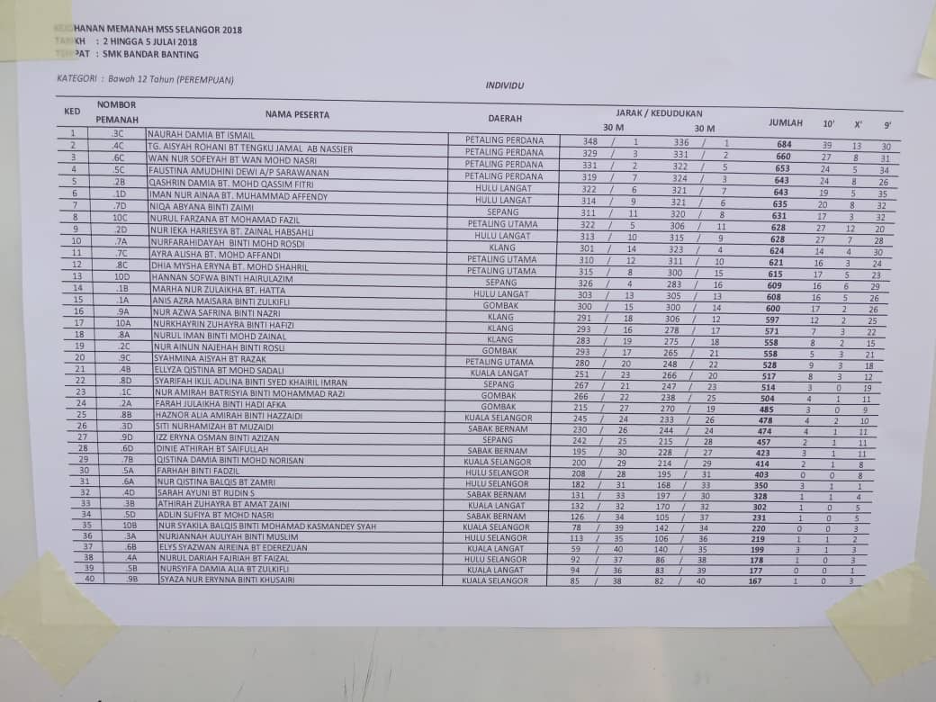 KEJOHANAN MEMANAH MAJLIS SUKAN SEKOLAH-SEKOLAH SELANGOR 2018